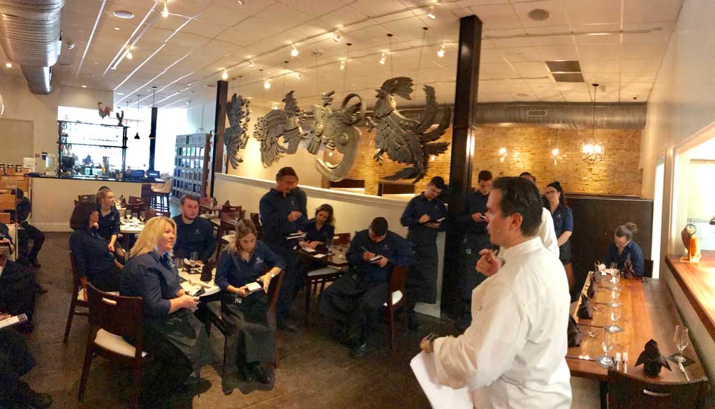 Chef Marcos Fernandez briefs the staff on the menu this morning.