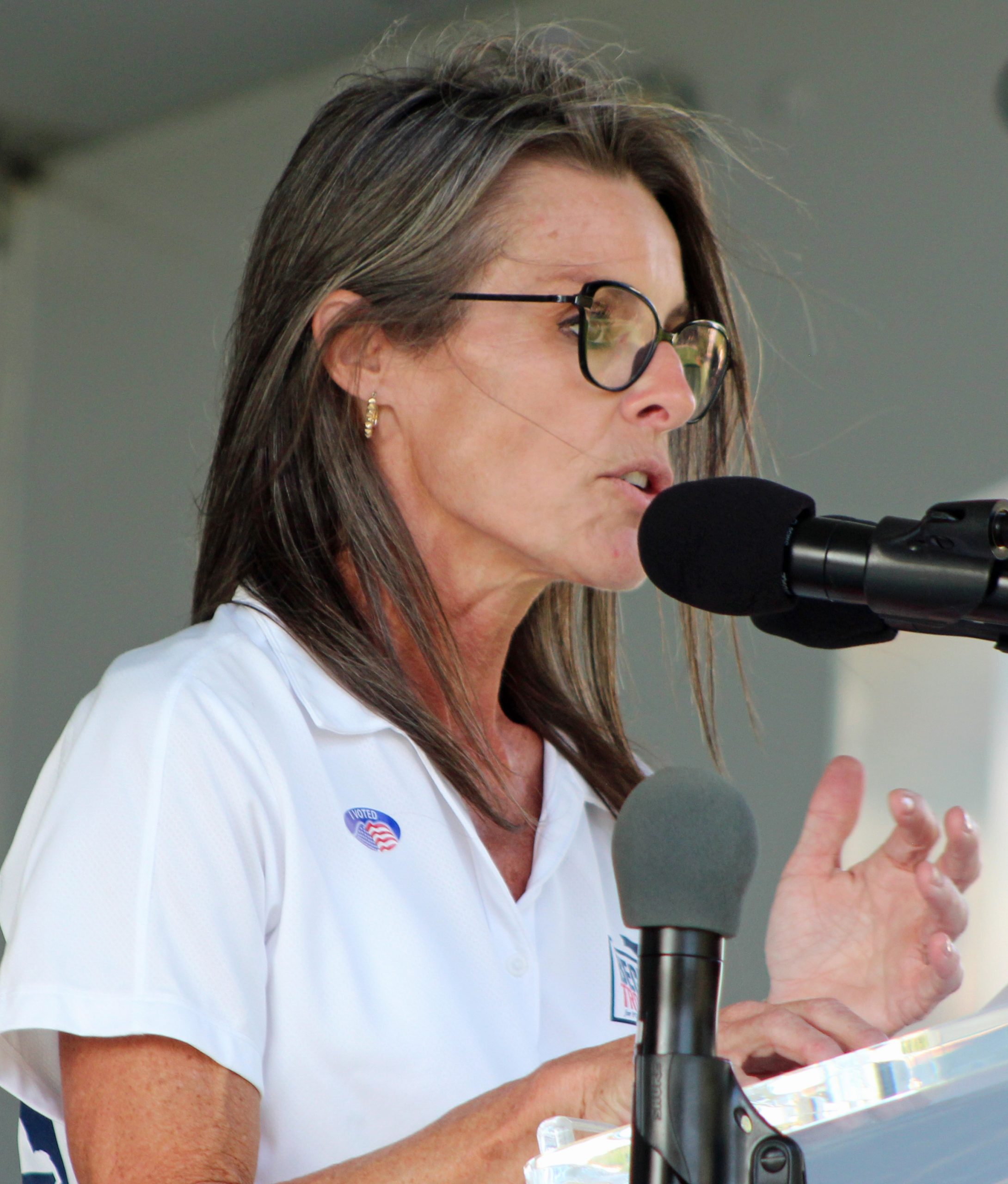 Becky Troutman speaks at Politics in the Park in August 2024. | Barry Friedman, LkldNow