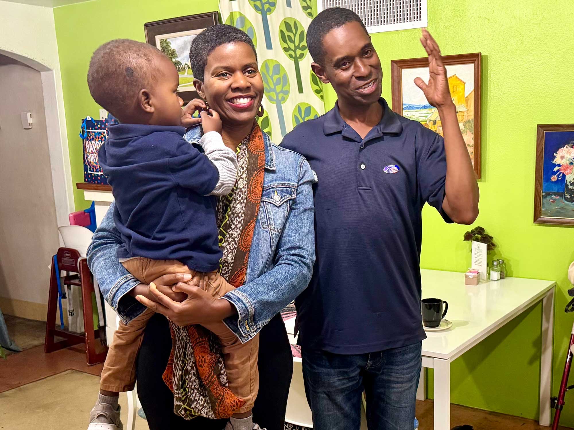 Ashley Troutman, accompanied by his wife, Kia, and 3-year-old son Ellis, addresses supporters at a victory party Tuesday night at Garden Bistro. The victory party doubled as a sixth birthday celebration for their other son, Bryce. | Barry Friedman, LkldNow