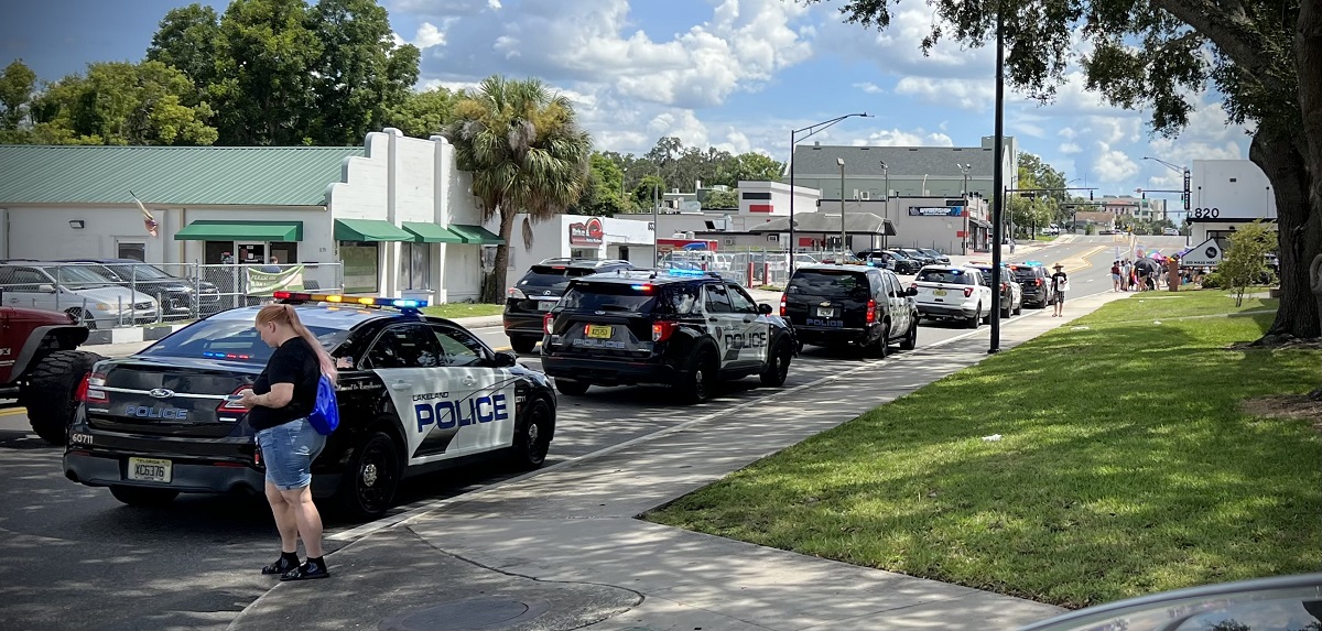 The Lakeland Police Department blocked off part of Massachusetts Avenue Sunday during a protest of a drag show brunch. | Kimberly C. Moore, LkldNow