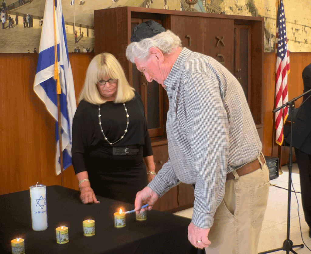 Temple Emanuel member Marvin Odro lights one of the candles.