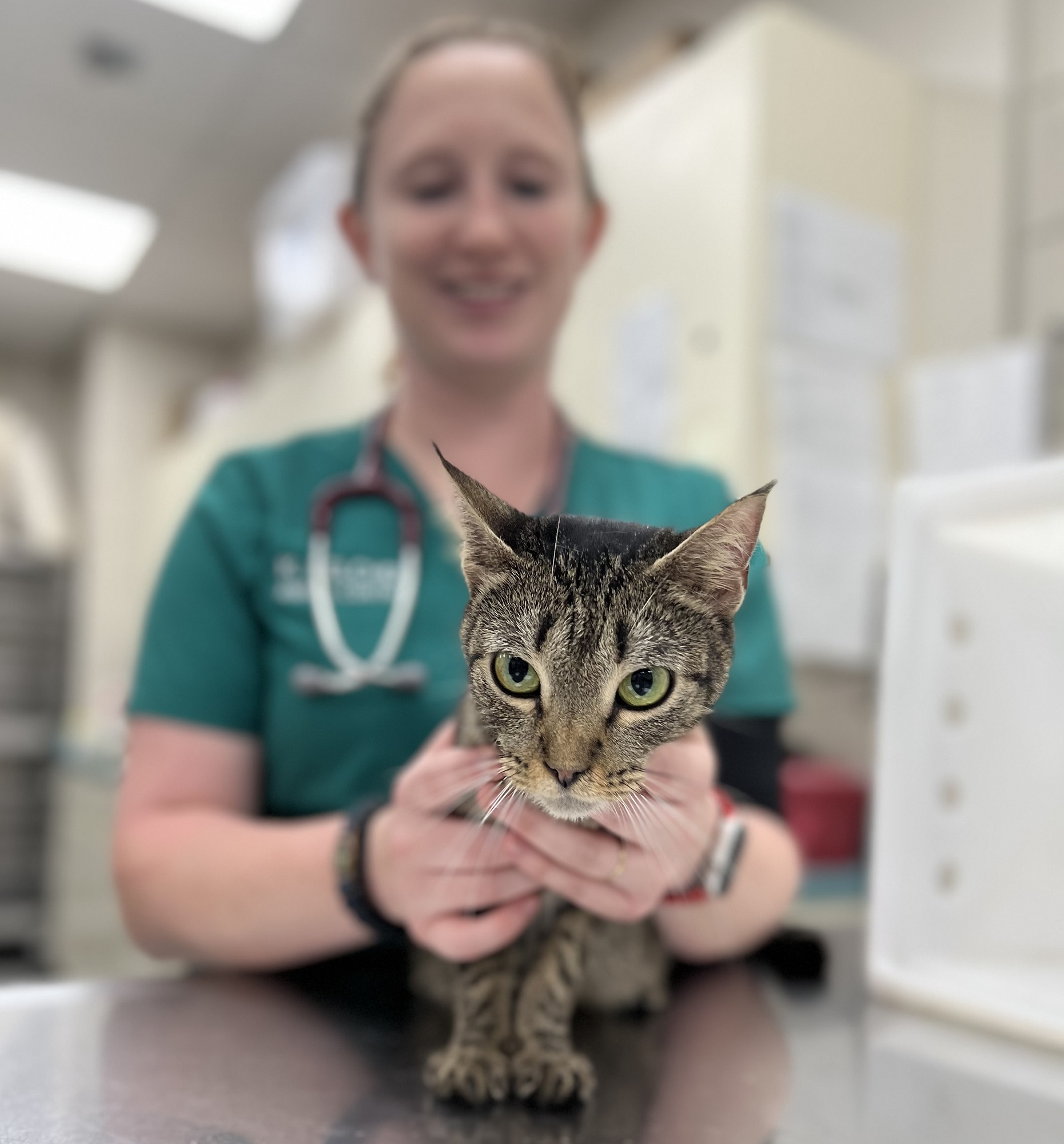 Kristina Belcher, an animal care technician, holds one of the 27 cats seized from a south Lakeland home Wednesday. | Kimberly C. Moore, LkldNow