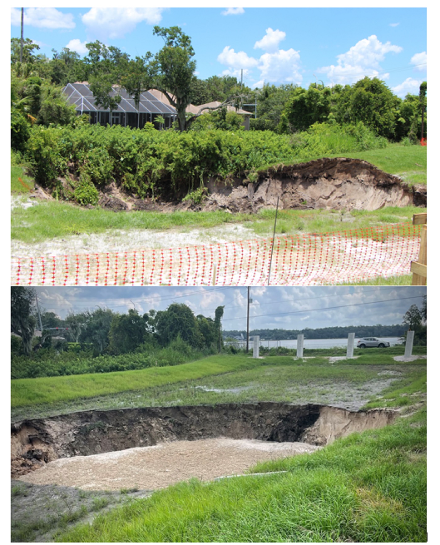 Photos of the sinkhole in June, top, and the one on Friday, Sept, 8, 2023, show its in almost the same spot. | LkldNow file and PCSO.