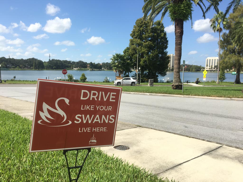 A new sign placed by First United Methodist Church